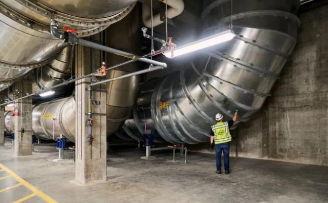 同樣,移動(dòng)大量液體和氣體也是一件重要的事。英特爾的頂級(jí)工廠大約有70英尺(21米)高,有巨大的風(fēng)扇幫助空氣循環(huán)到正下方的潔凈室。在潔凈室的下面是成千上萬(wàn)的泵、變壓器、動(dòng)力柜、公用事業(yè)管道和與生產(chǎn)設(shè)備連接的冷水機(jī)。