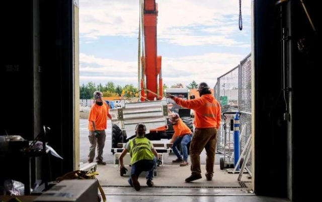 希爾斯伯勒的工人搬運(yùn)建筑材料。▲