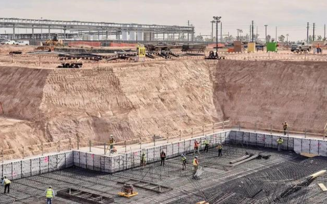起重機(jī)在錢德勒工地搬運(yùn)建筑材料。除其他外,這些起重機(jī)將為新晶圓廠吊裝 55 噸冷水機(jī)。▲