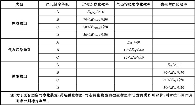 空氣凈化裝置按作用對象分類,可分為顆粒物型、氣態污染物型和微生物型,代號分別為KL、QT、WS。